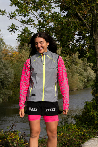 Complete your look with our fully reflective Gilet, 360° visibility, lightweight, breathable and built for every run.