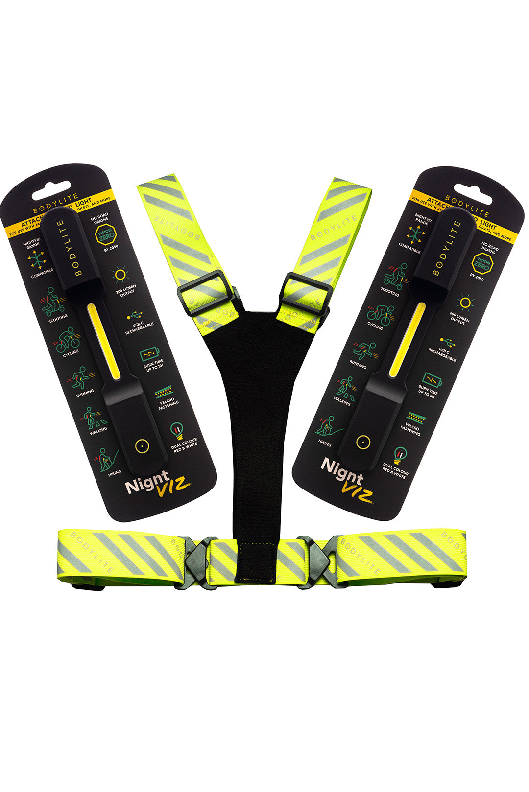 NightViz Bundle : 2 Safety Lights + High Vis Vest